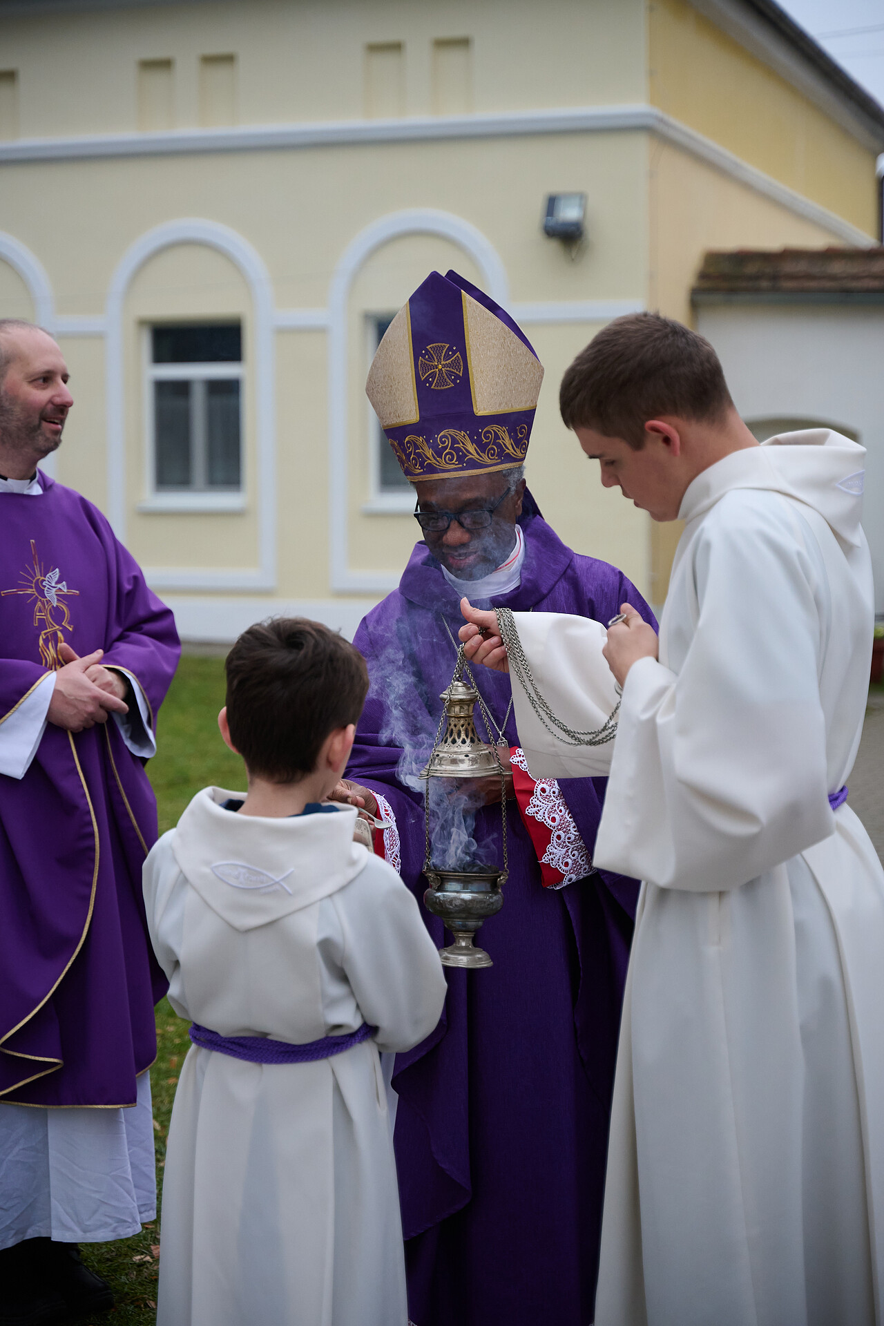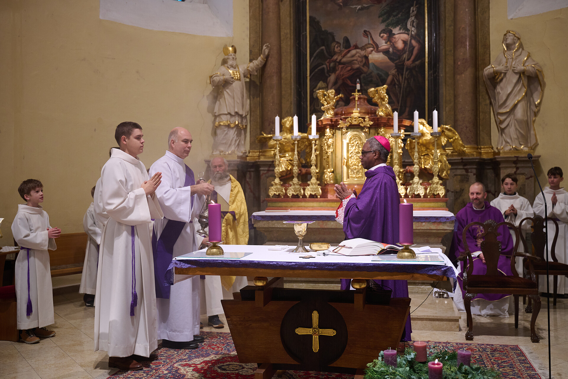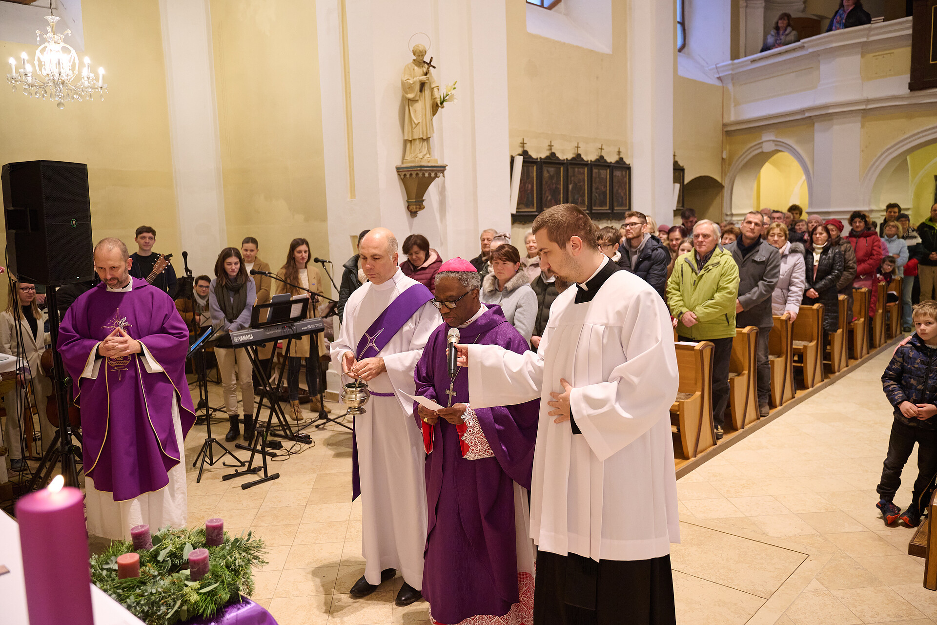 Apoštolský nuncius arcibiskup Jude Thaddeus Okolo navštívil v neděli 30. listopadu 2025 naši farnost, kde sloužil mší svatou v 8:00, po které následovalo setkání s farníky.