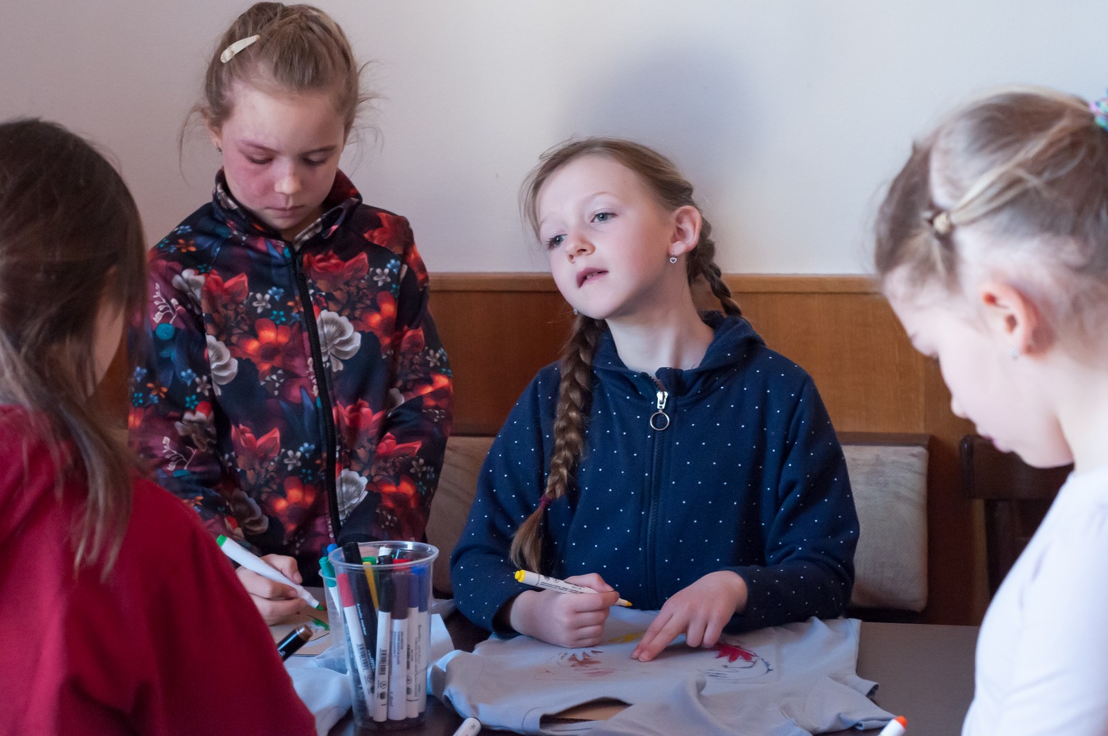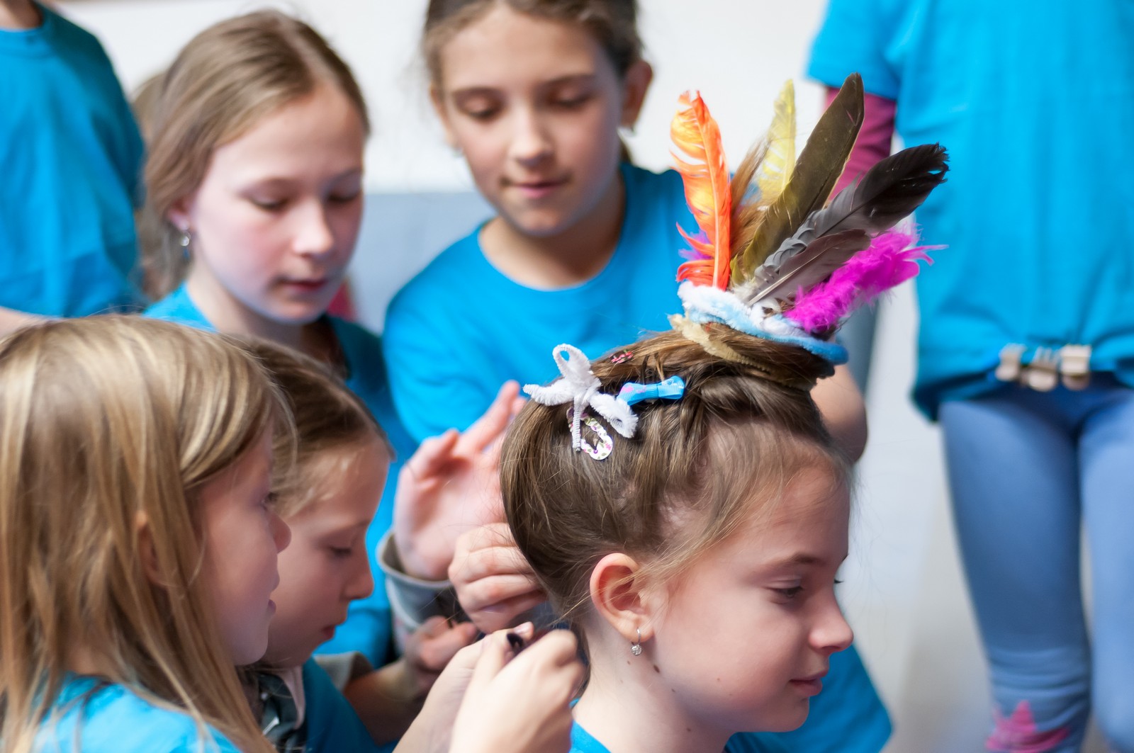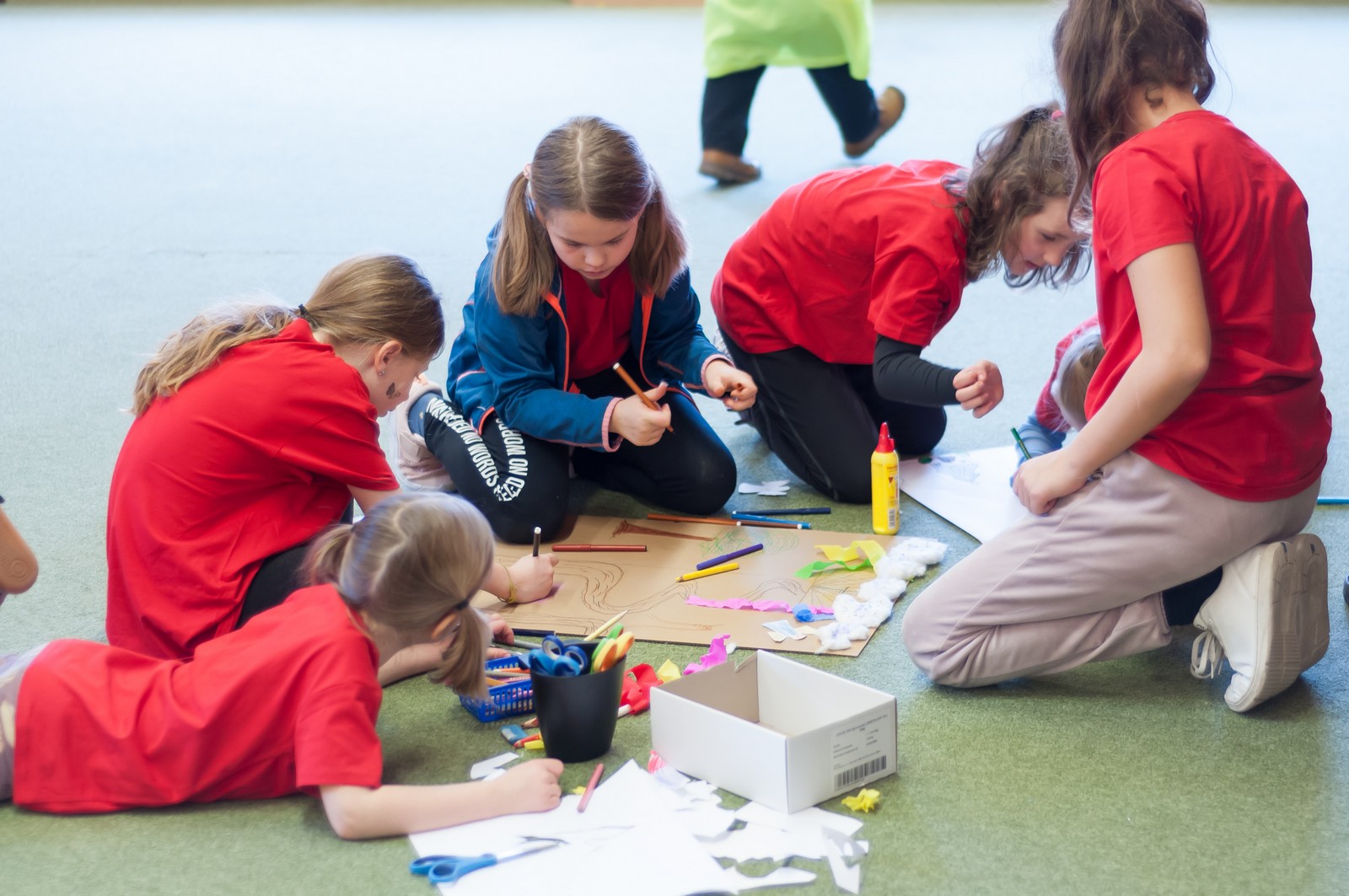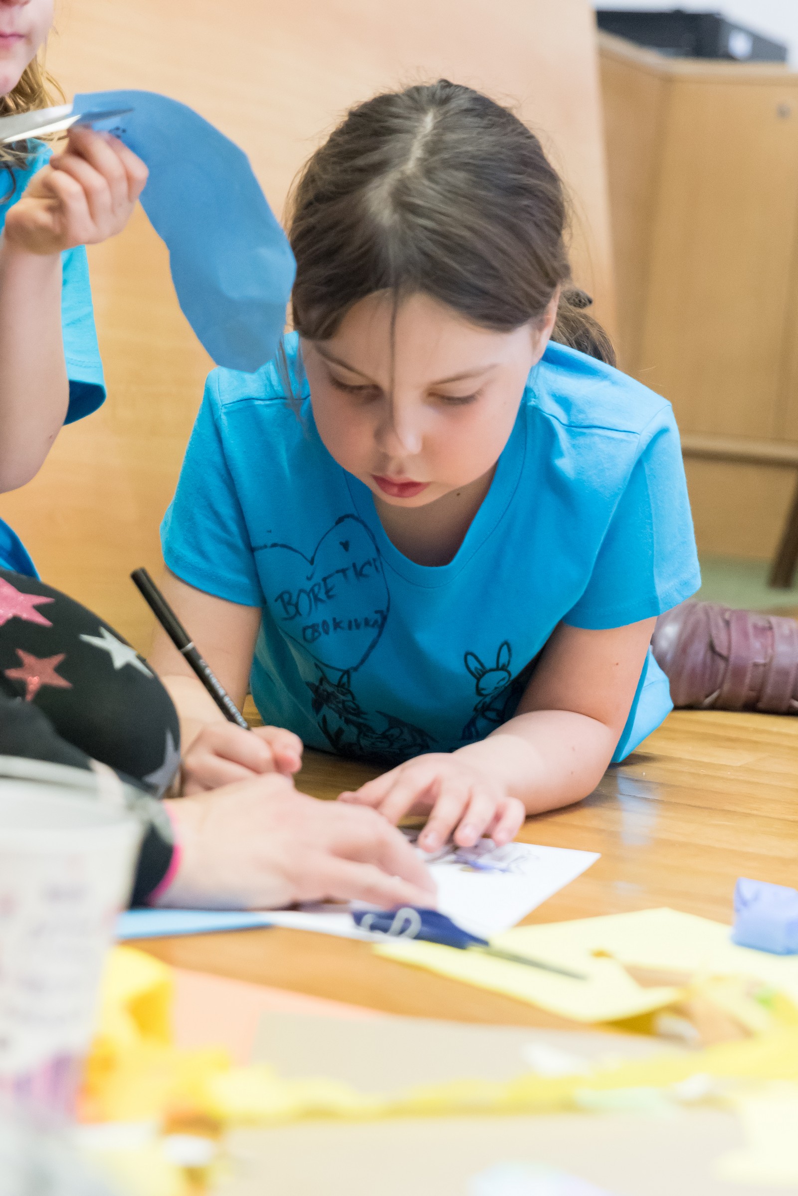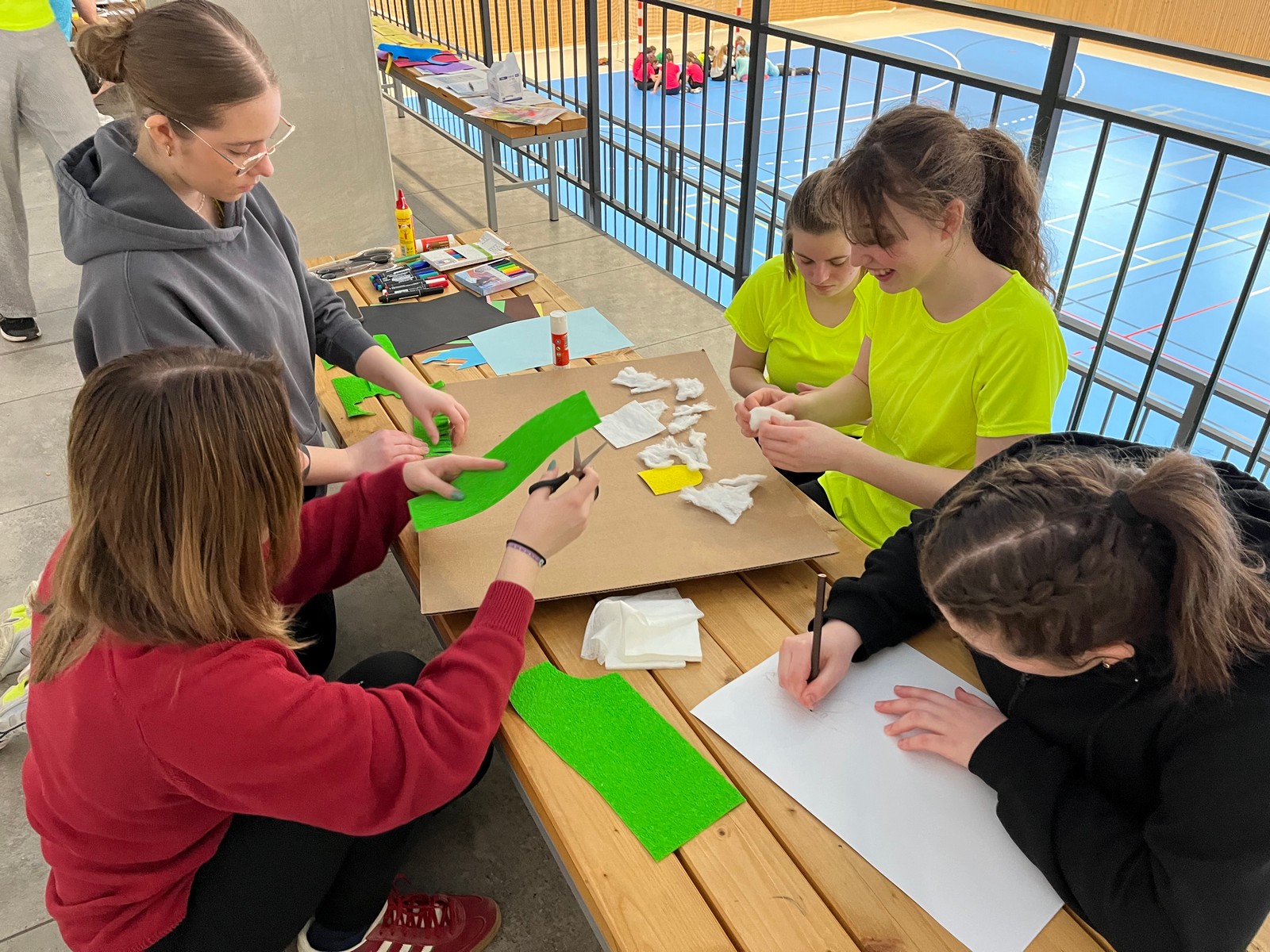 Pozitivní emoce však v tu chvíli bylo ještě třeba přetavit v kreativního ducha: všechny týmy dostaly do rukou sadu materiálů pro výrobu papírových kostýmů. Téma bylo zvoleno pro všechny stejné: zvířátka. Katolický týdeník, toaletní papír, izolepa, nůžky a 30 minut času. Děvčata se svého úkolu zhostila doslova fantasticky. Neopakovatelná umělecká díla si pak mohli prohlédnout nejen všichni přítomní soutěžící, ale i fanoušci a především odborná porota. Ta byla letos složena z těchto členů: P. Pavel Šenkyřík, biskupský vikářy pro pastoraci a vzdělávání, Lucie Šenkyříková z Katechetického centra Biskupství brněnského, místostarostka města Rajhrad Magda Mlejnková, měnínská katechetka Růženka Aujezdská a šéfredaktorka dívčího časopisu IN Marie Stejskalová. Bylo pro ně věru těžkým úkolem z nádherné zoologické zahrady vybrat ty nejlepší modely. Dalším nelehkým úkolem bylo ocenit nejkrásnější olympijské básničky, které děvčata skládala během celého olympijského dne. Za všechny můžeme citovat tuto poezii týmu II. stupně ZŠ Syrovice A: