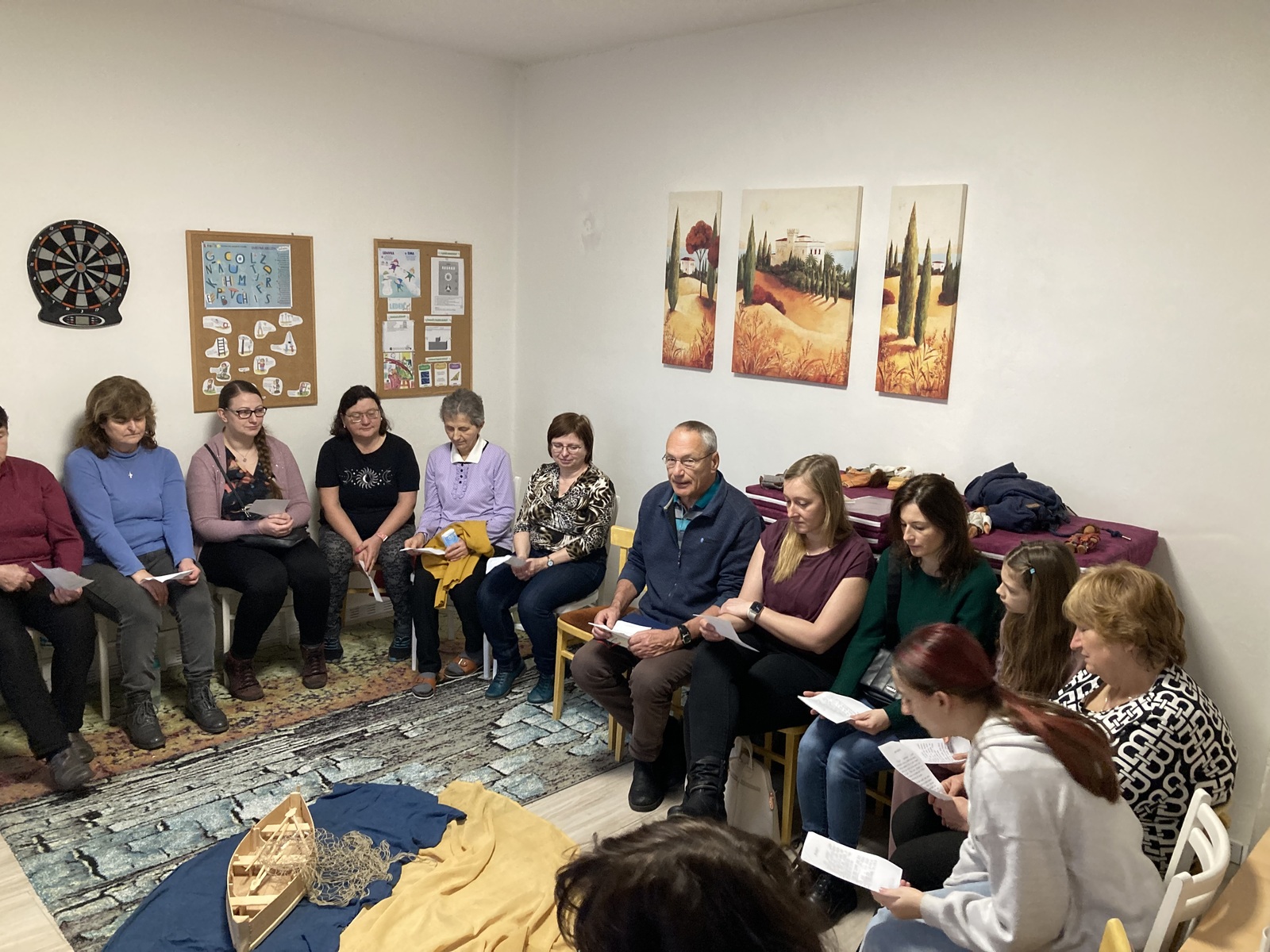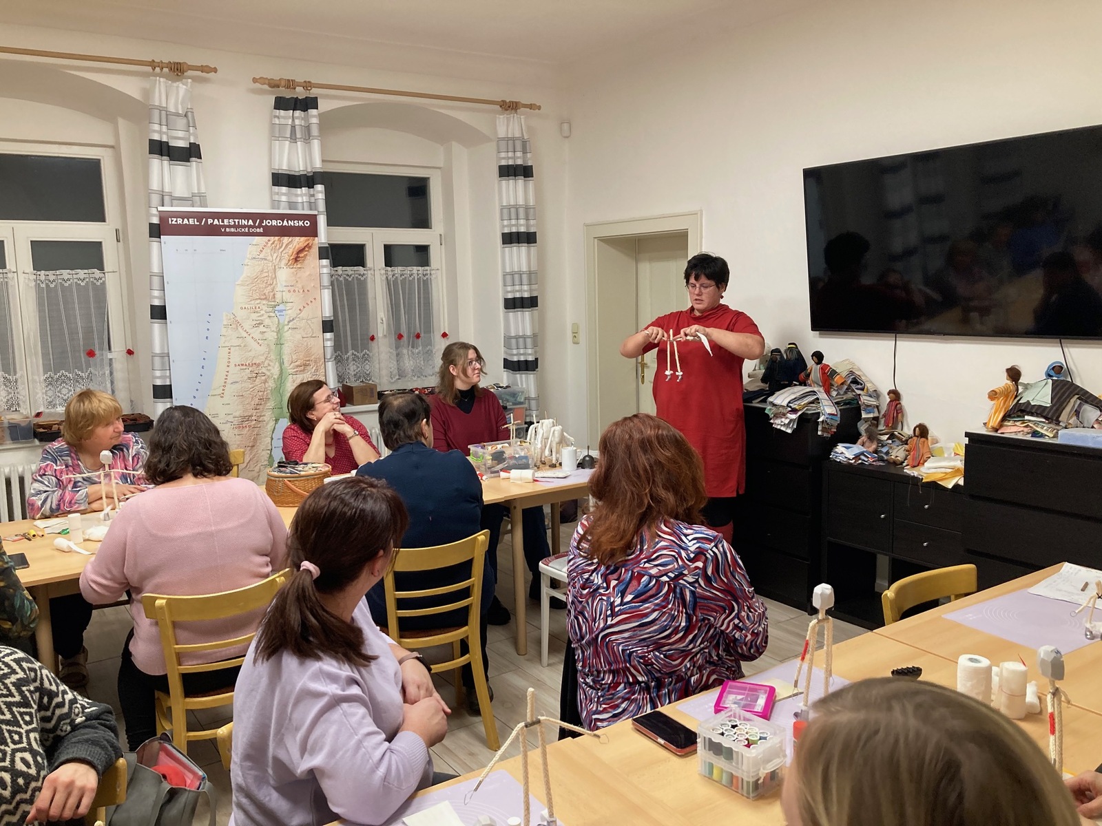 Součástí kurzu byla také biblická hodina s využitím postaviček, kterou vedl P. Petr Chalupa (ředitel Českého katolického biblického díla). Účastnice kurzu si během tvoření vyzkoušely práci s různými materiály a vytvořily biblické postavičky. Ty budete moci vidět při nedělních bohoslužbách, kde s jejich pomocí “ožijí´ evangelní příběhy dané neděle.